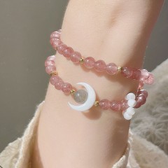 Statement Jewelry ✨:A mesmerizing blend of soft pink rose quartz / sunny citrine beads, paired with a delicate shell moon charm. This double - loop bracelet is a bohemian - chic accessory that elevates any outfit, day or night.